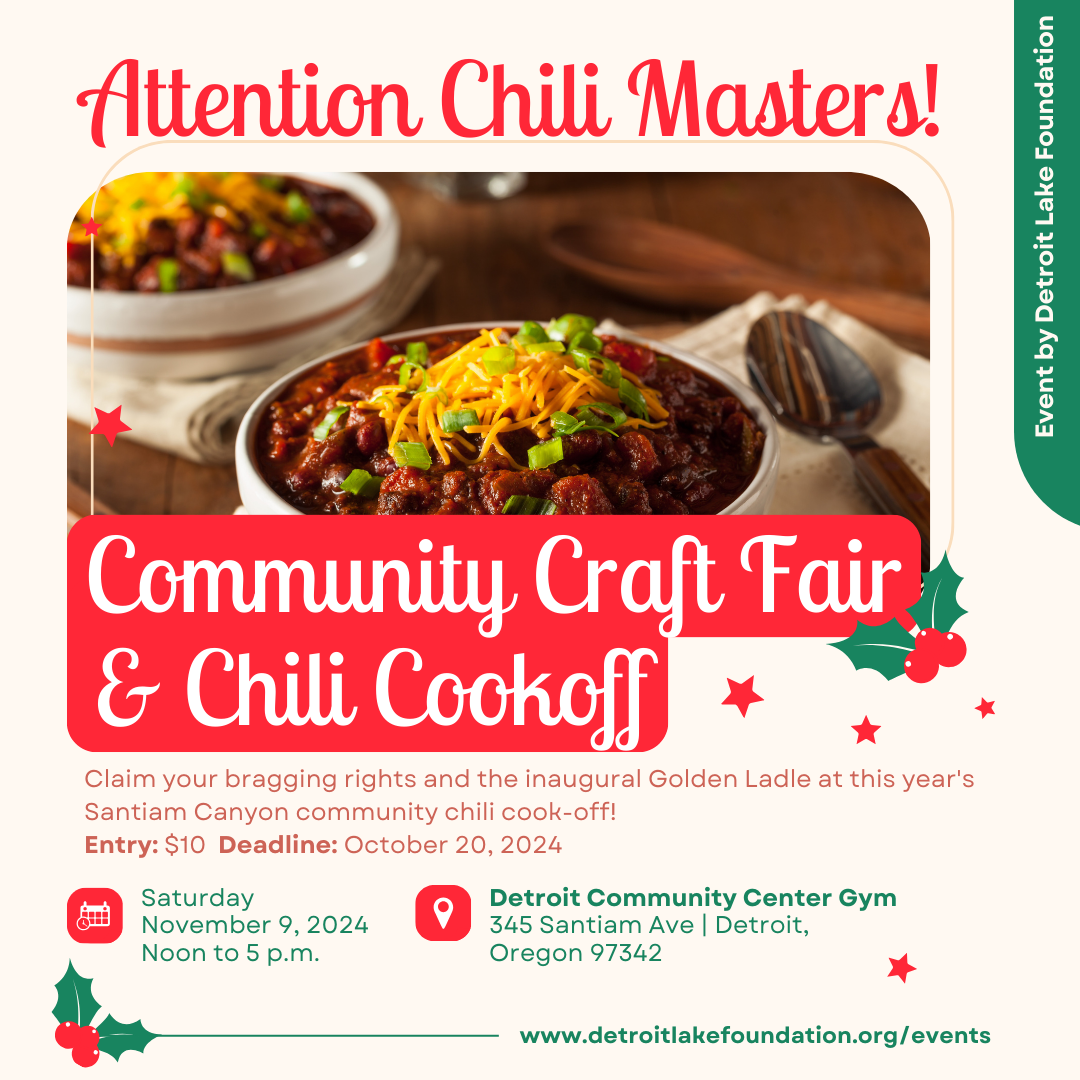 Sign up to battle it out with other culinary pros as you go head to head in the ultimate spicy competition - A CHILI COOKOFF!